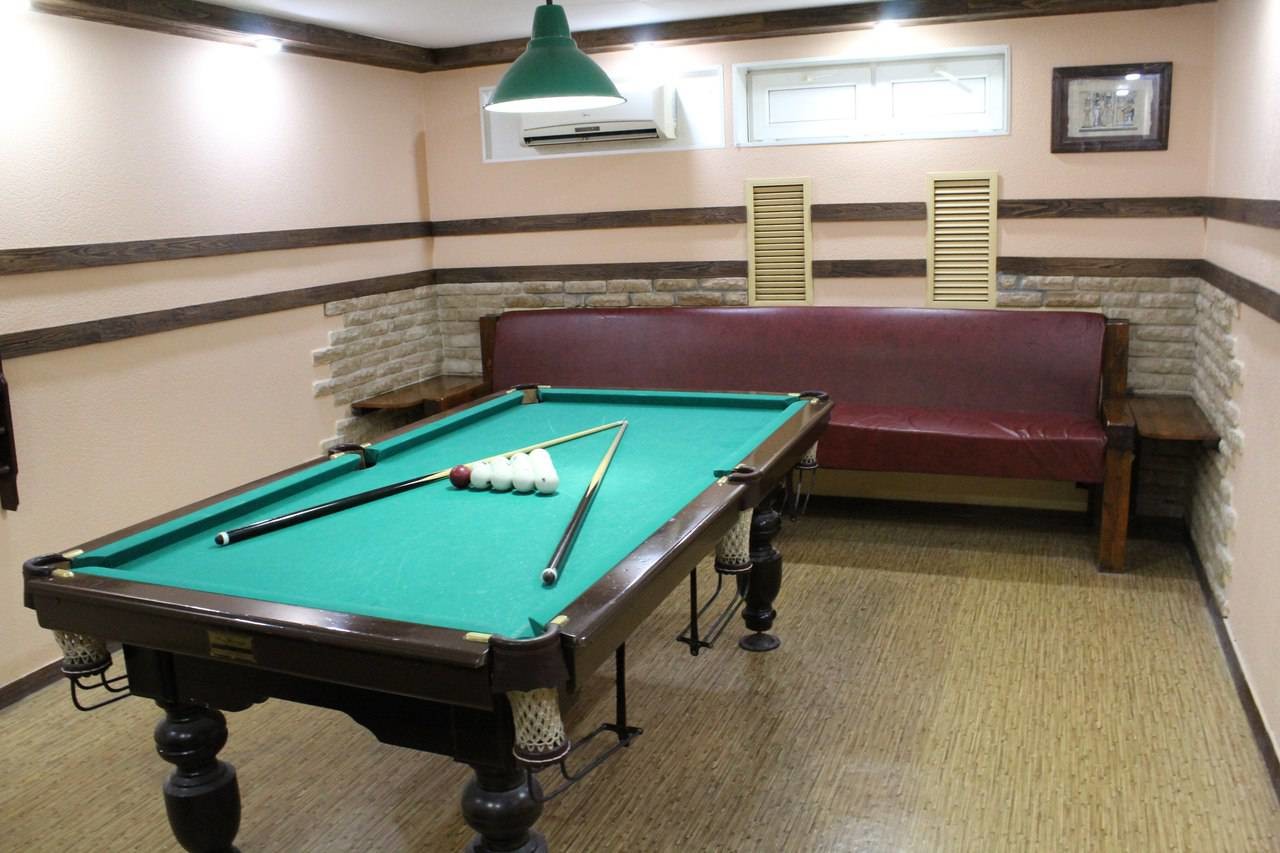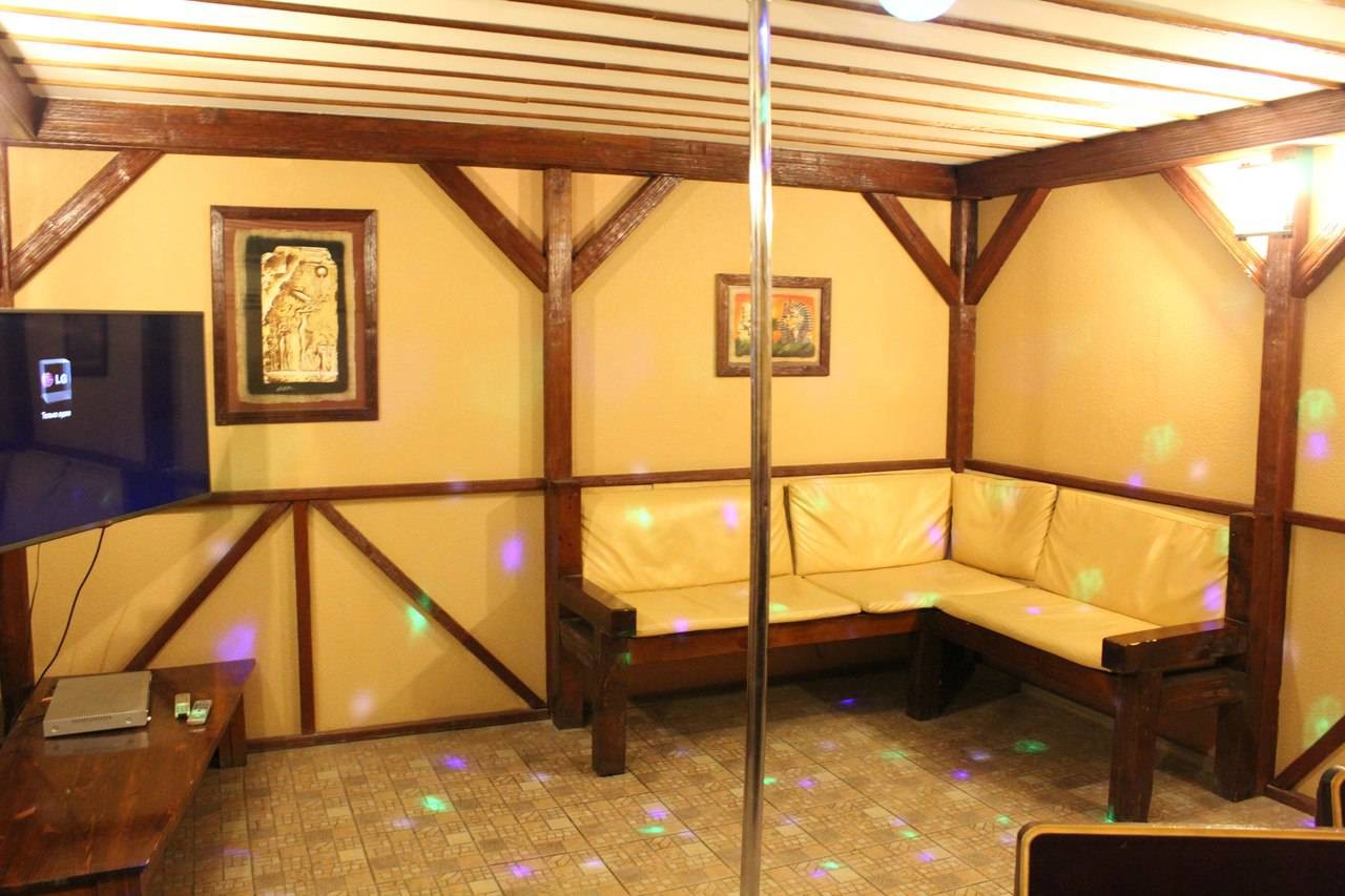 Гостям не придётся скучать, ведь в банном комплексе предусмотрено всё для полноценного досуга. Вы можете спеть отечественные и зарубежные хиты в караоке, воспользоваться домашним кинотеатром и посмотреть любимые фильмы, сыграть в бильярд или нарды. Для более пикантных развлечений есть шест для стриптиза.