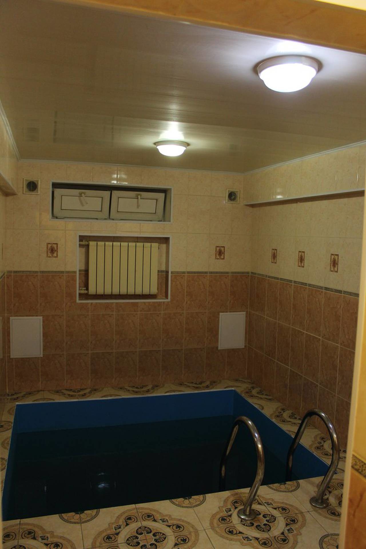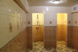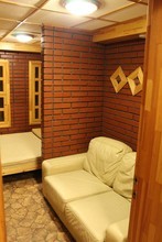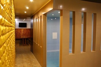 К услугам посетителей два зала с турецким хаммамом и финской сауной. В каждом есть бассейн размеров 2x2 и глубиной 1,8 метров, комфортные душевые, две комнаты отдыха с удобными кроватями и банкетная зона с мягким диваном и большим столом. В помещениях сделан евроремонт, а интерьер оформлен в современном стиле.